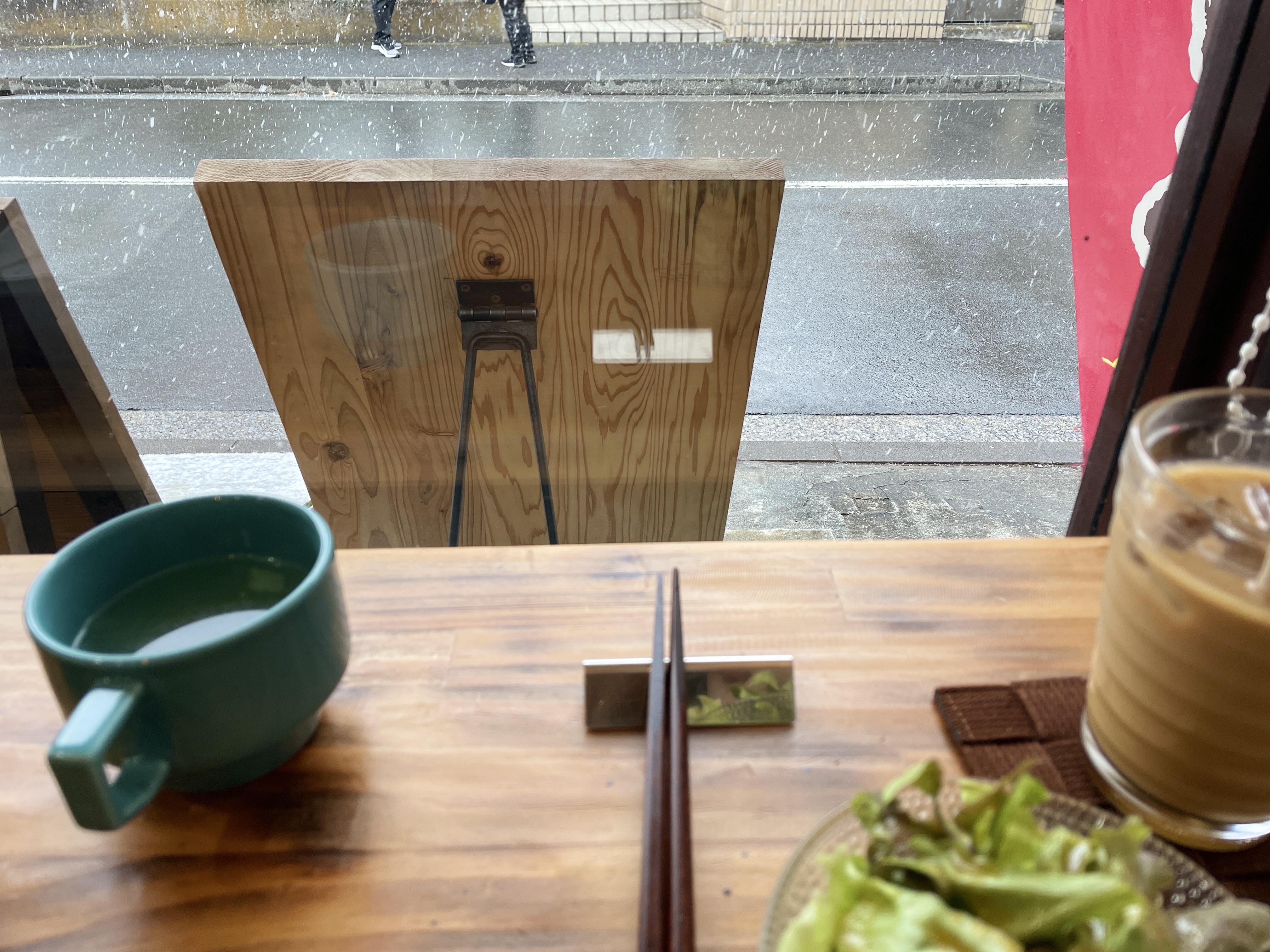 카페 도착 눈 볼라고 창가 자리에 착석