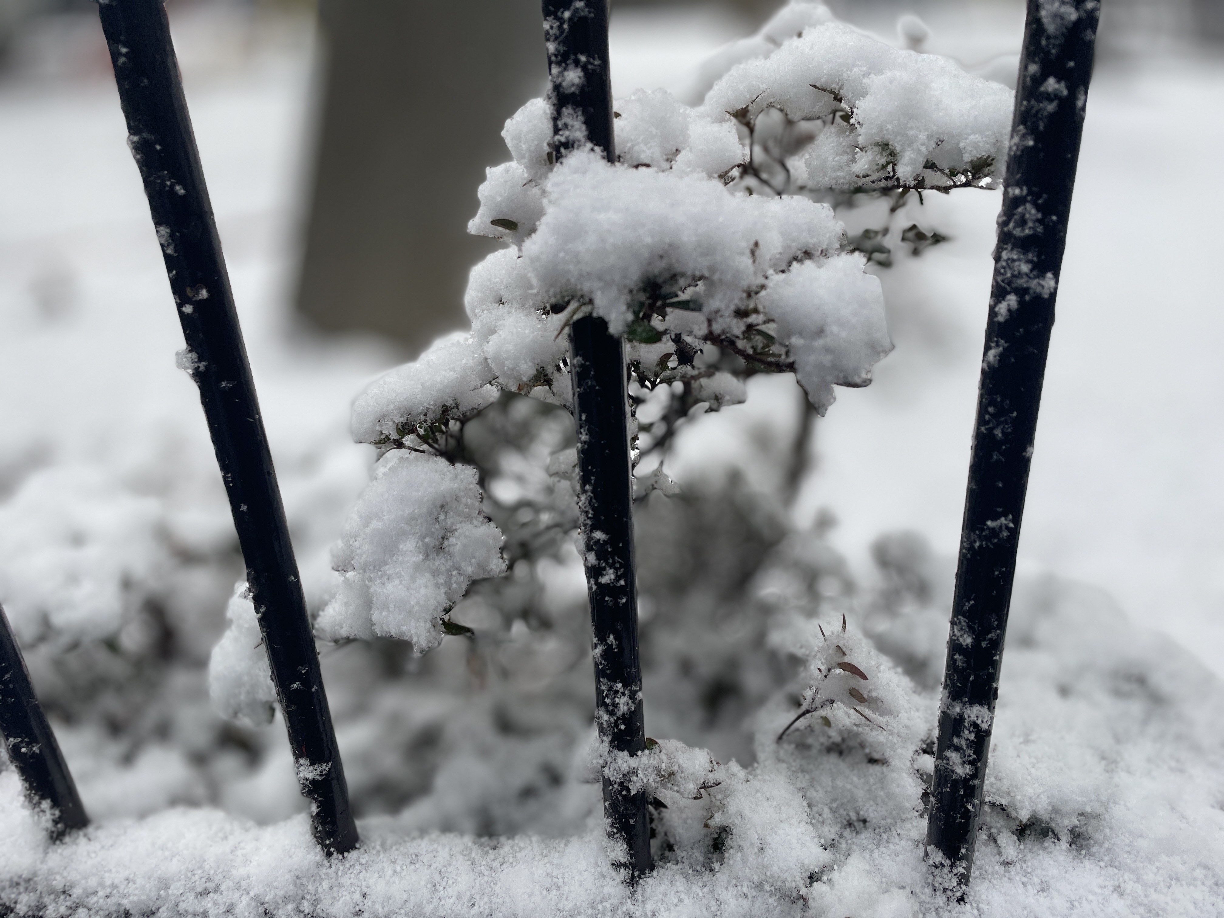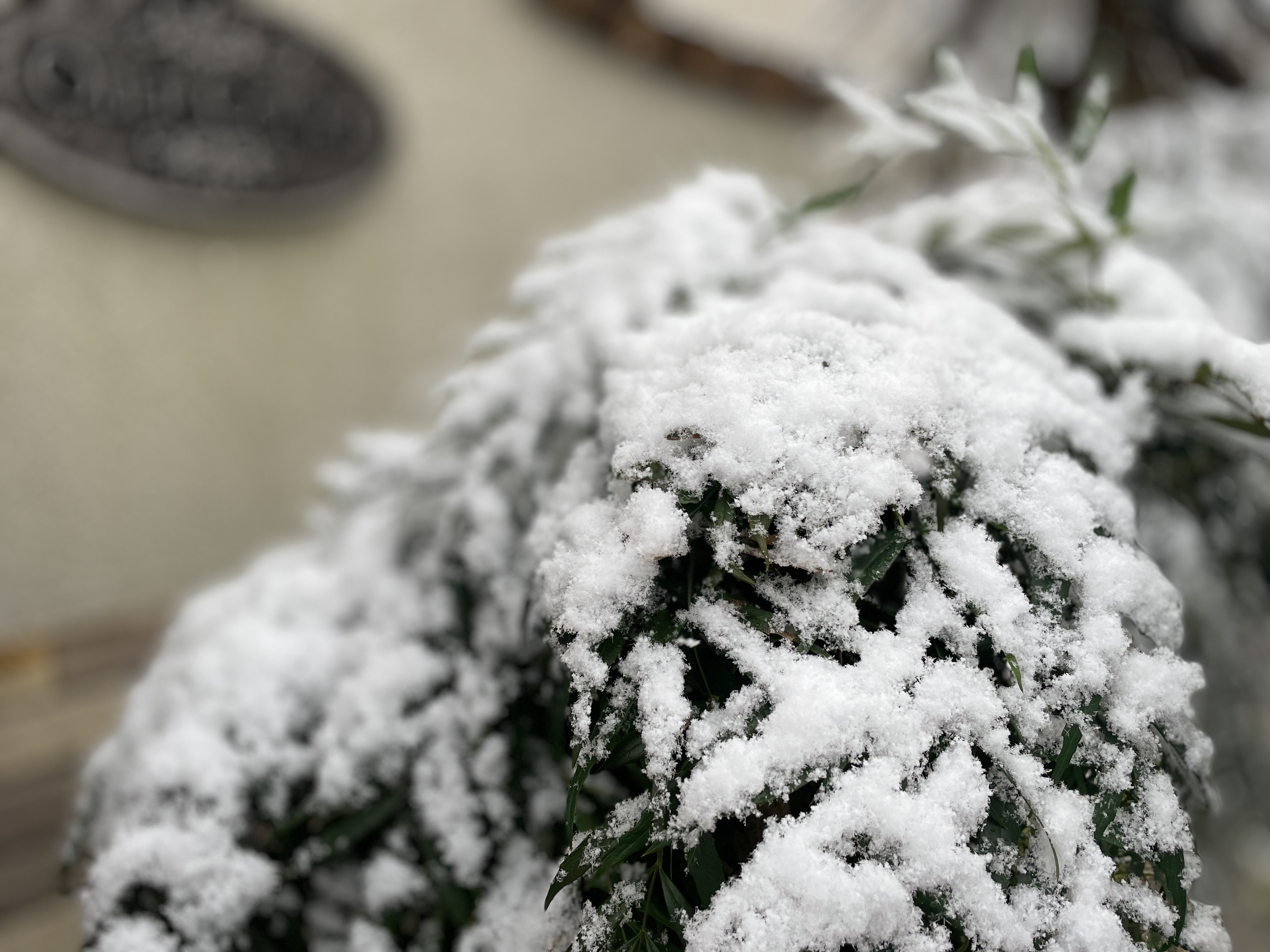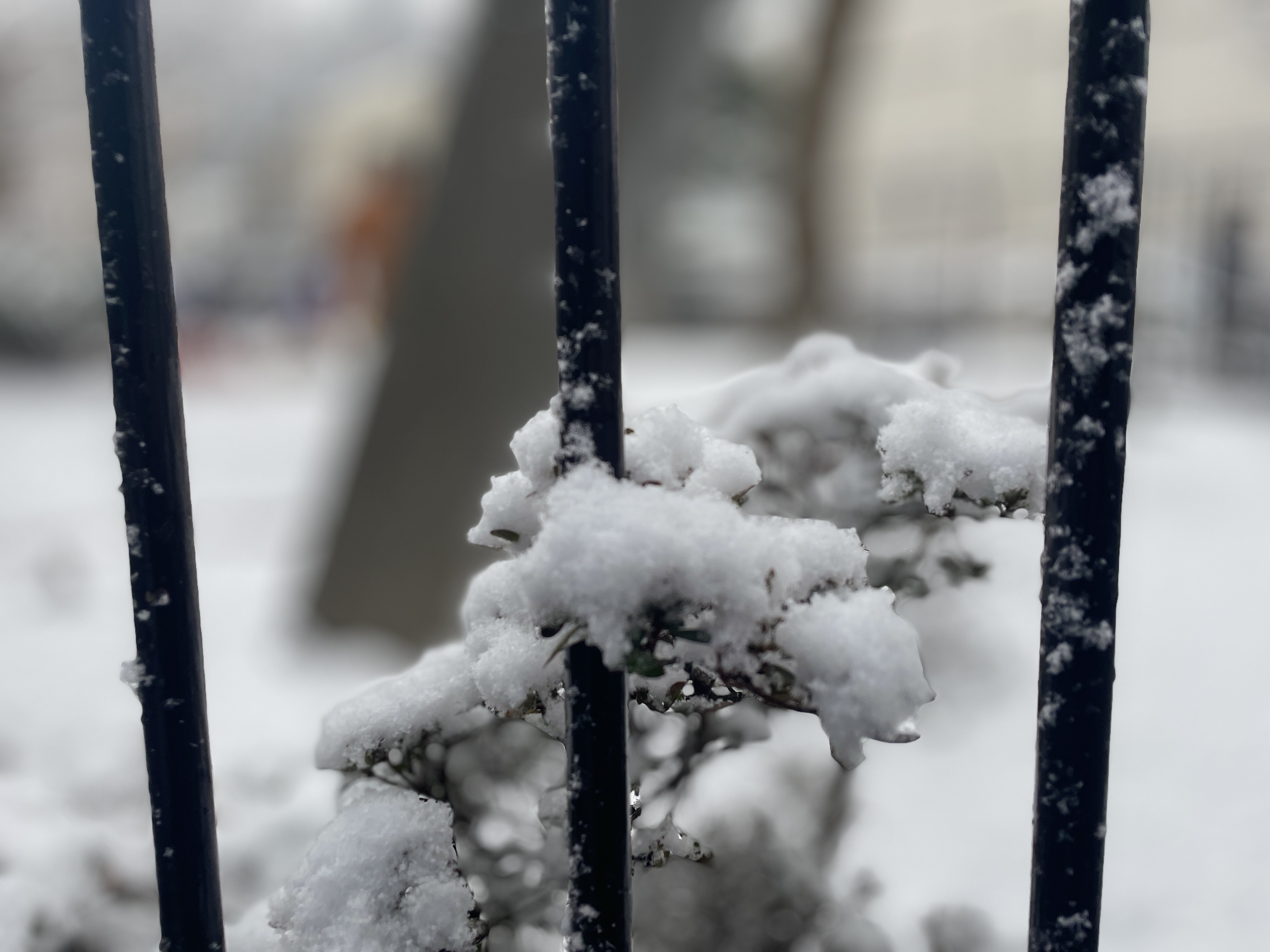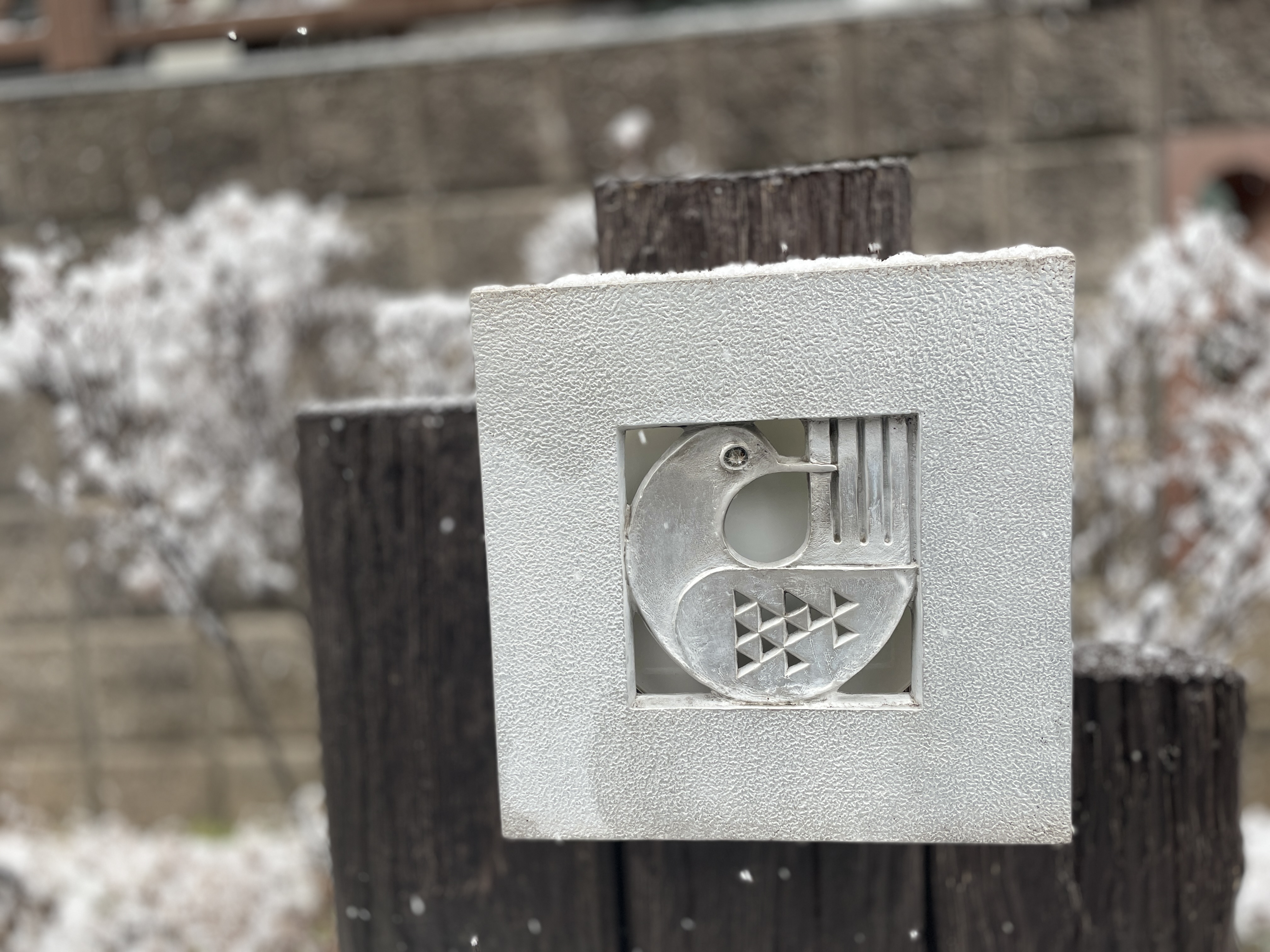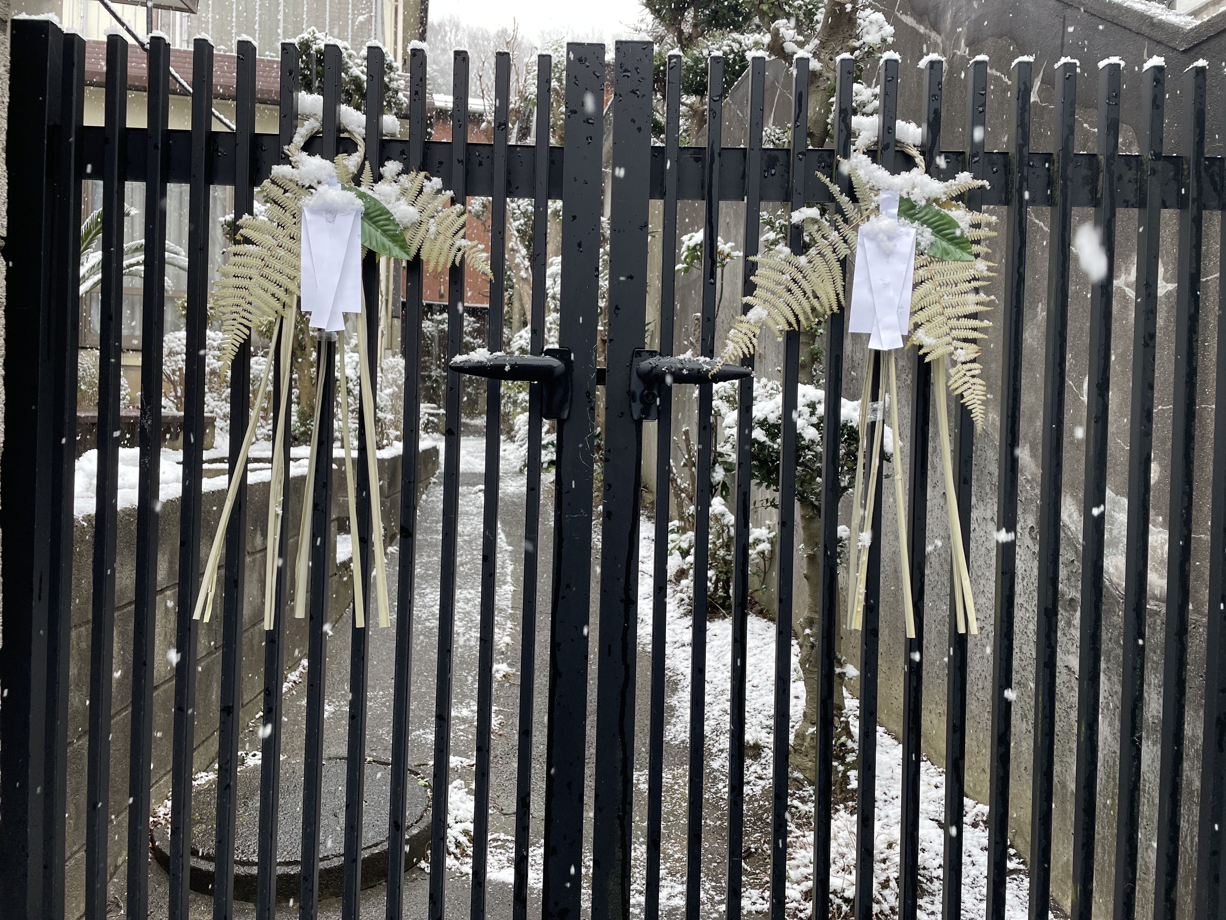신년 맞이 장식들 위에도 눈이 쌓임