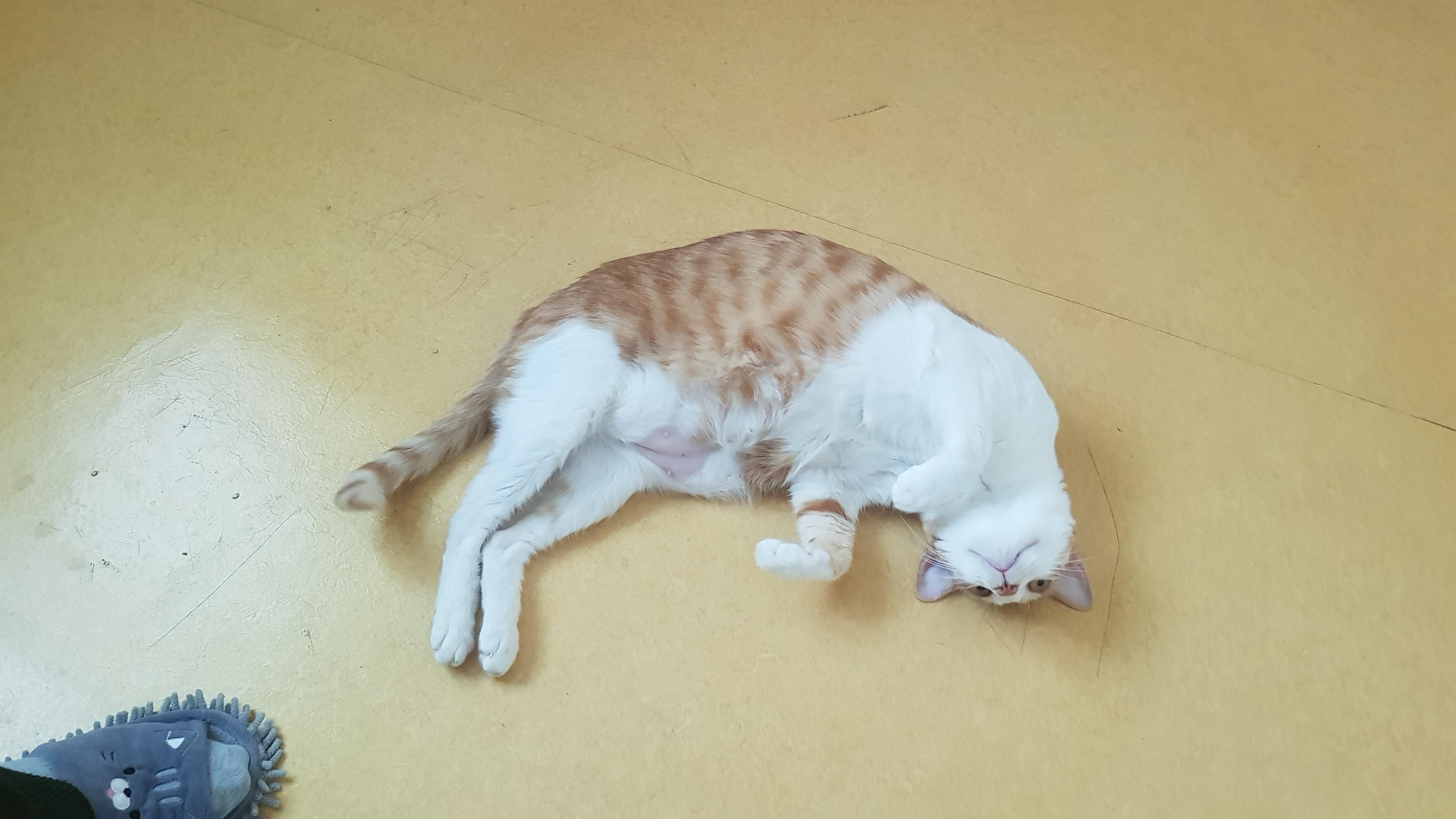 저 집사를 한대 칠까- 하다가 움직이기 귀찮은지 걍 몸 말아버림 ㅋㅋ