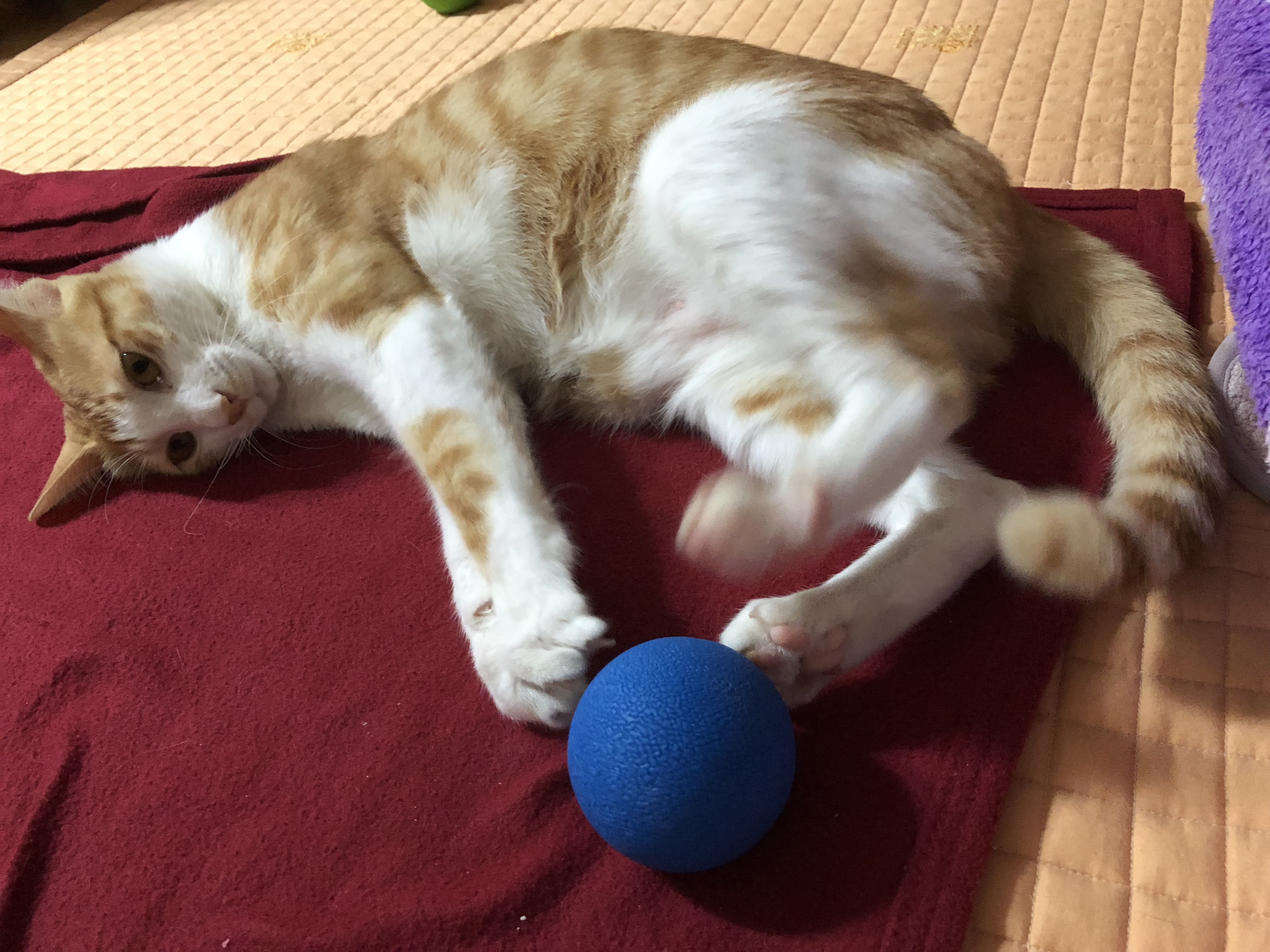 연두색 공도 가져다 드렸는데 파란 공에 시선 고정